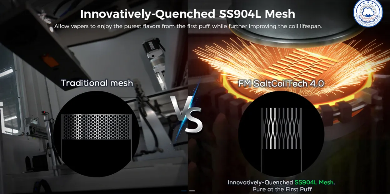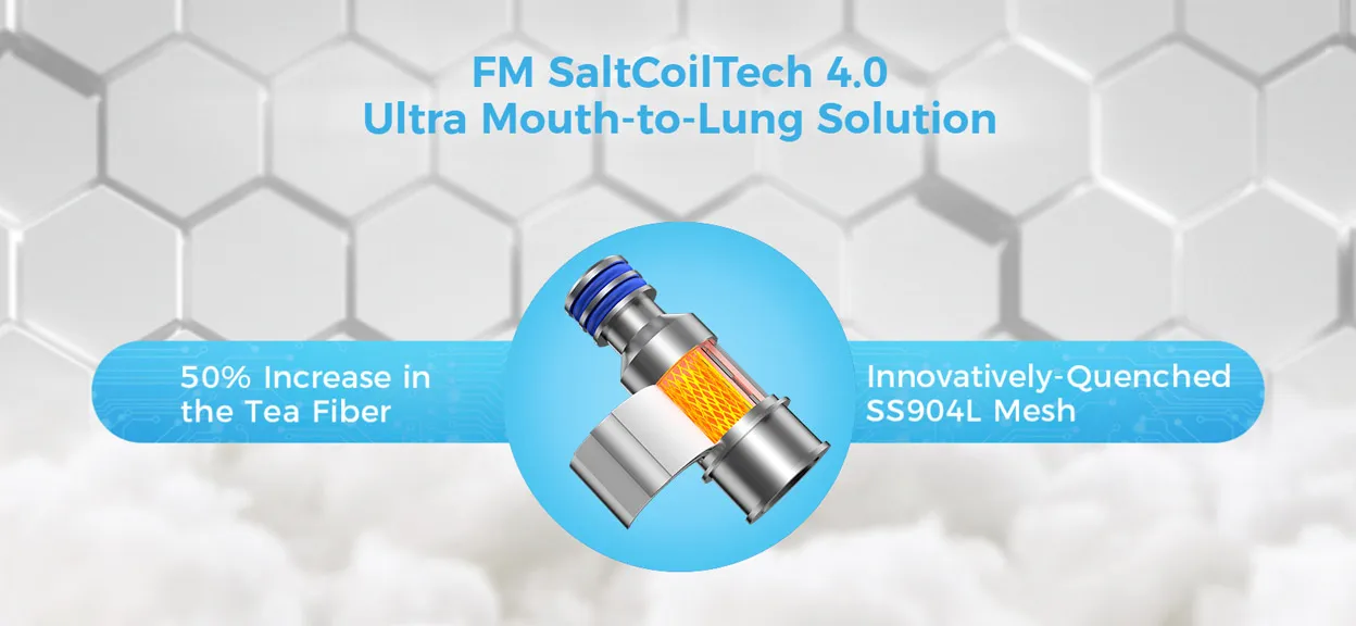 Not only that, it utilizes brand-new FM SaltCoilTech 4.0 mesh coil technology, which increases tea fiber content by 50% and uses innovatively-quenched SS904L mesh to bring purer flavors and extend the coil’s lifespan.