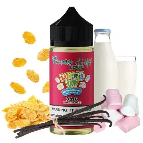 Luckd Up 100ml – Ferrum City, A complex creation of sweet marshmallows & toasted cereal grains soaking in a bowl of vanilla-flavored milk. Love your l*cky Charms cereal? This one is a masterpiece to replicate that! This morning vape juice consists of Sweet Marshmallows, Morning Cereal, Vanilla, and milk.