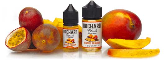 Mango Passion – Orchard Blends. This carefully crafted tropical blend e-liquid of Haden Mango and Purple Passion Fruit e-juice mixed to perfection for an island escape in every hit. Therefore, you will love this ejuice.