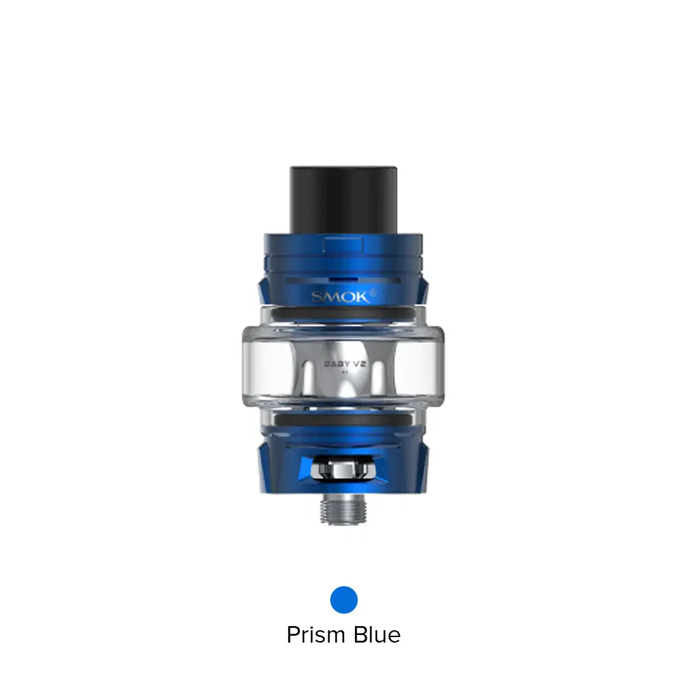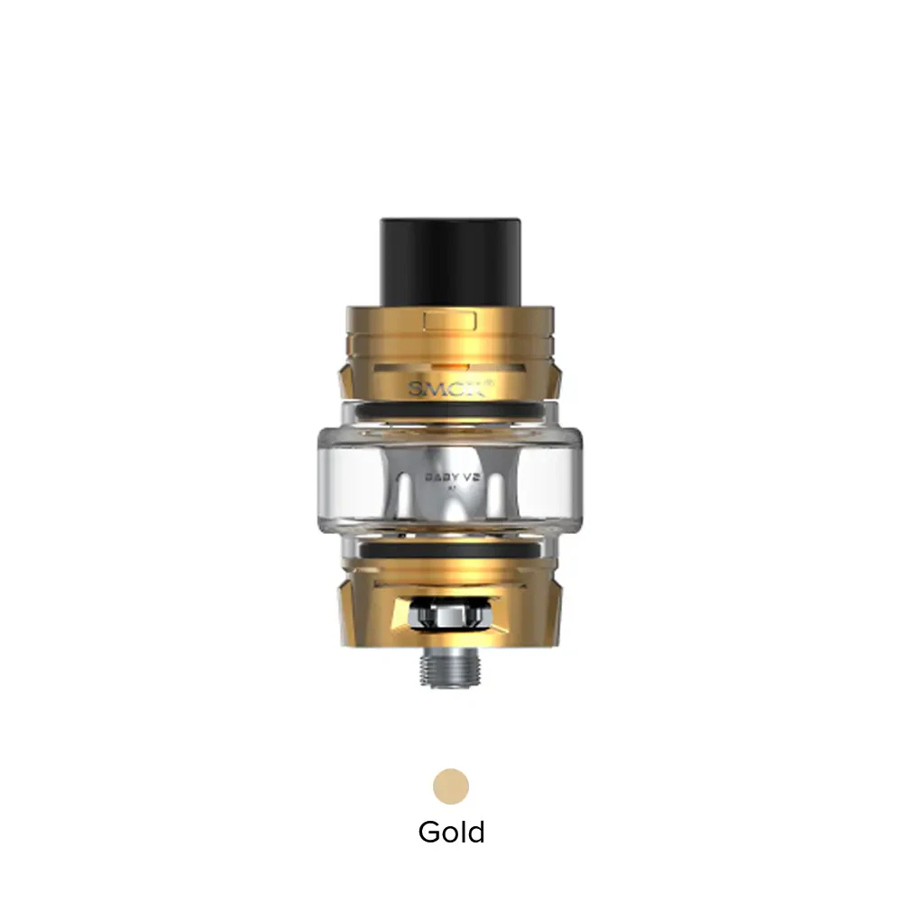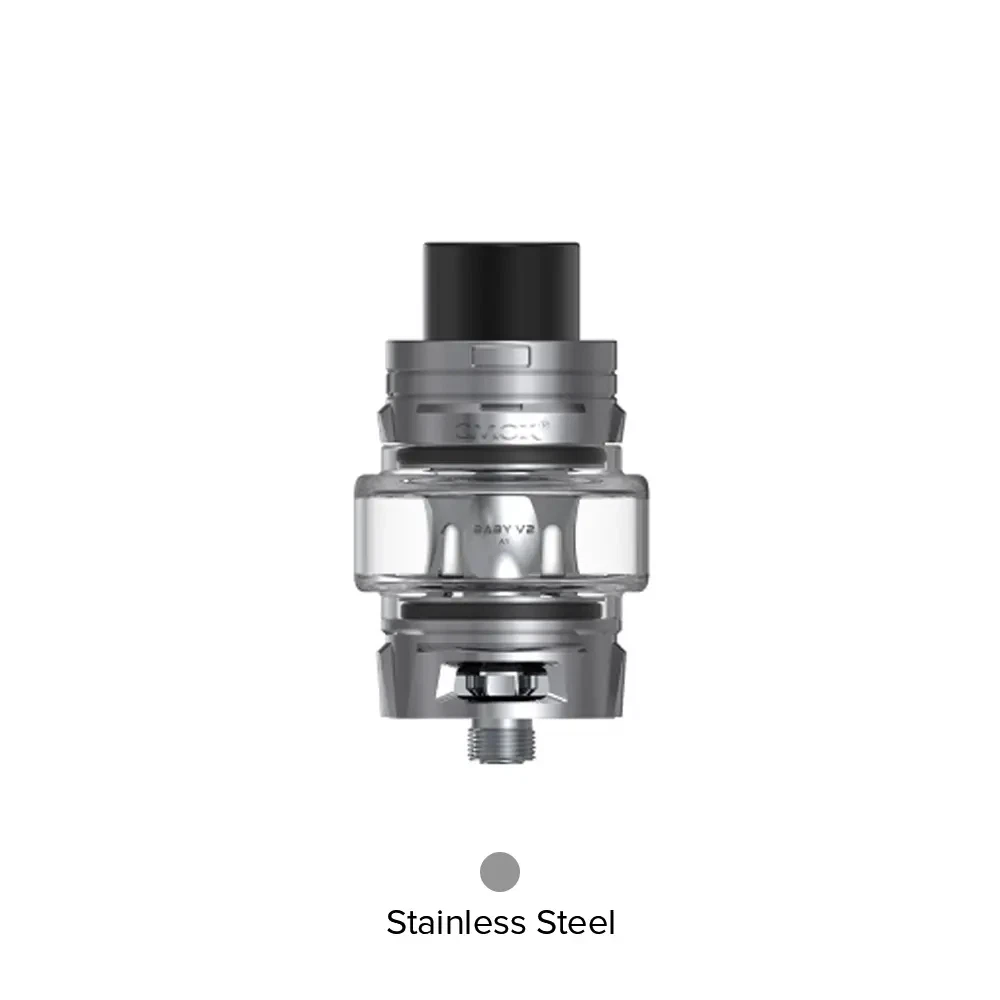 Smok TFV8 Baby V2 Tank. The latest upgraded version tank. “V” carved on the top cap and base is a symbol of a new version. With the bulb pyrex glass tube, the tank can hold 5ml liquid. Moreover, the tank is compatible with new cores Baby V2 A1, A2, and A3.