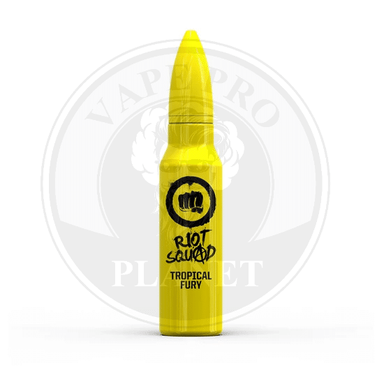 Tropical Fury Riot Squad. A powerful mix of bashed tropical fruit combined to deliver a tangy, intense vape with a sparkly, warm aftertaste, an exotic blast of flavors. therefore, you should try. Besides. you should stock.