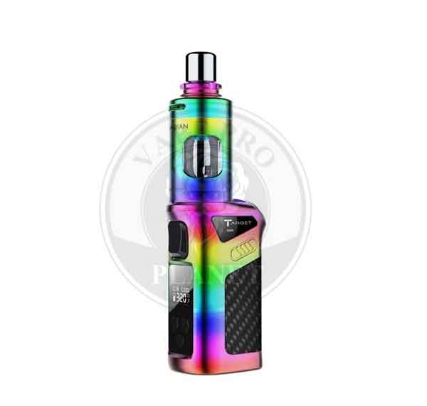 Vaporesso Target Mini Kit, as the mini version of TARGET Pro, Mini Design, Fit Perfectly in the hand, Output Modes–VW/VT(Ni, SS, Ti)/TCR, Firmware Upgradable with customized configuration. With 40 watts of maximum output and a built-in battery.