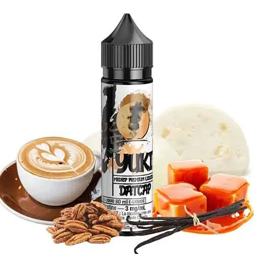 YUKI DAT CAP By Mr Drip E-juice. Try the new vanilla mochis E-liquid made with vanilla kernel ice cream, coated in a lightly sweetened rice paste. This one prepared with a coulis of cappuccino, caramel, and pieces of pecan. Therefore you must try it.